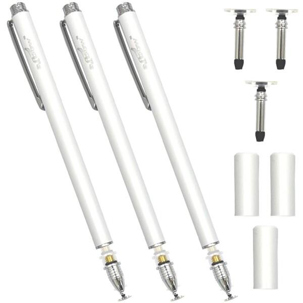 aibow タッチペン スタイラスペン 充電不要 iPad iPhone スマホ Android タブレット Switch 対応 ディスクタイプペン 3本(キャップ付)+交換用ディスク 3個 ホワイト(光沢無し)