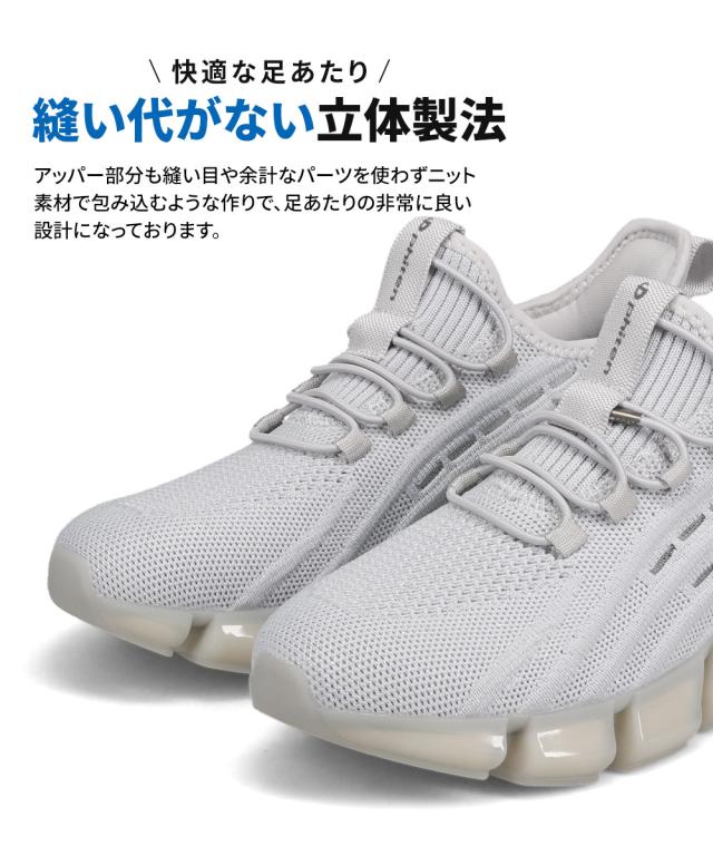 アッパー部分も縫い目や余計なパーツを使わずニット素材で包み込むような作りで、足あたりの非常に良い設計になっております。