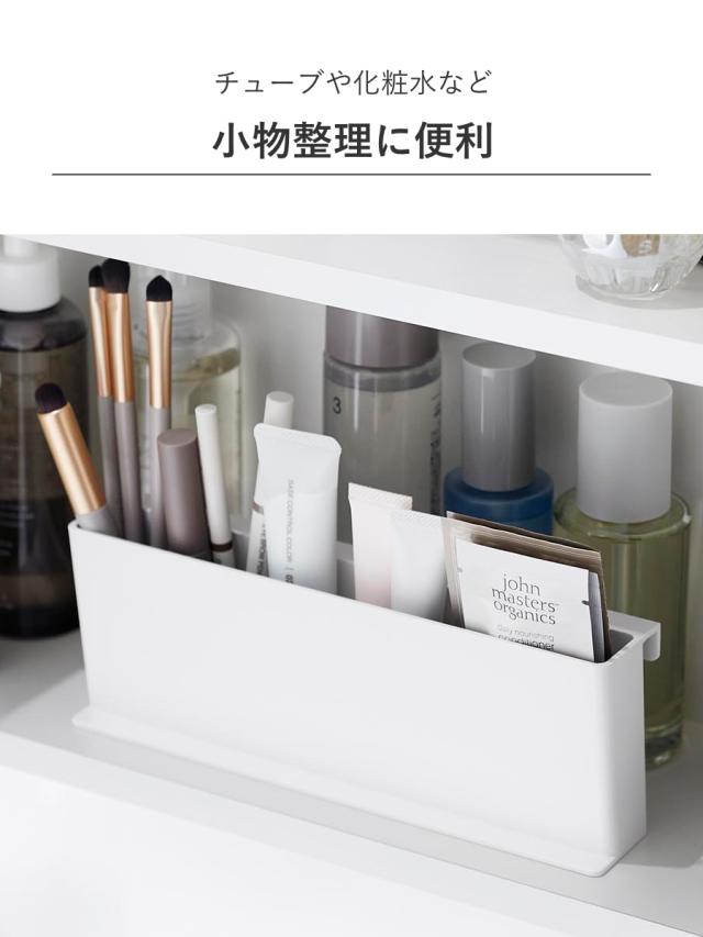 メイク道具や日用品などの小物もまとめて収納でき、戸棚の中や洗面台周りがスッキリ整います。取り出しやすく整理しやすい設計です。
