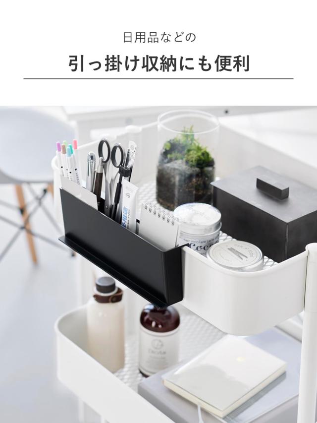フック付きで、ワゴンやファイルボックスの側面に引っ掛けて使えるのも魅力です。収納スペースを無駄なく活用できます。