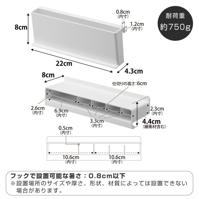 | 備考 | フックで設置可能な厚さ:0.8cm以下 ※設置場所のサイズや厚さ、形状、材質によっては設置できない場合があります。 |