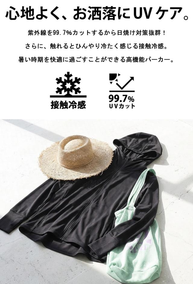接触冷感 パーカー レディース UVカット フード付き 送料無料・メール便不可 春新作