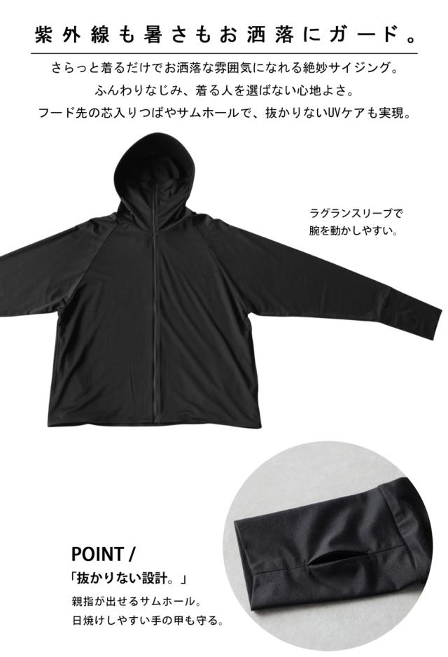UVカット機能付きで紫外線対策や日焼け防止、日焼け対策、日よけまで一枚で叶えるラッシュガード感覚の羽織りとして活躍します。