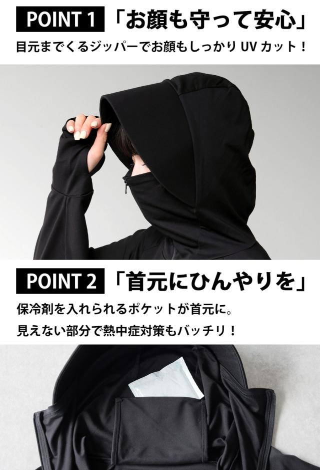 na-00521 ラッシュガード 紫外線対策 日焼け防止 日焼け対策 日よけ ジップアップ 前開き 長袖 冷感素材 指穴付き 体型カバー フェイスカバー付き 通勤 通学 アウトドア お出かけ