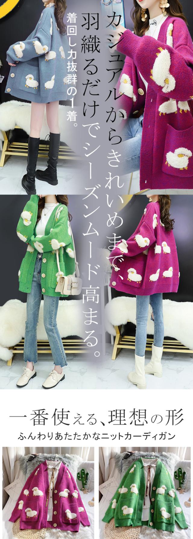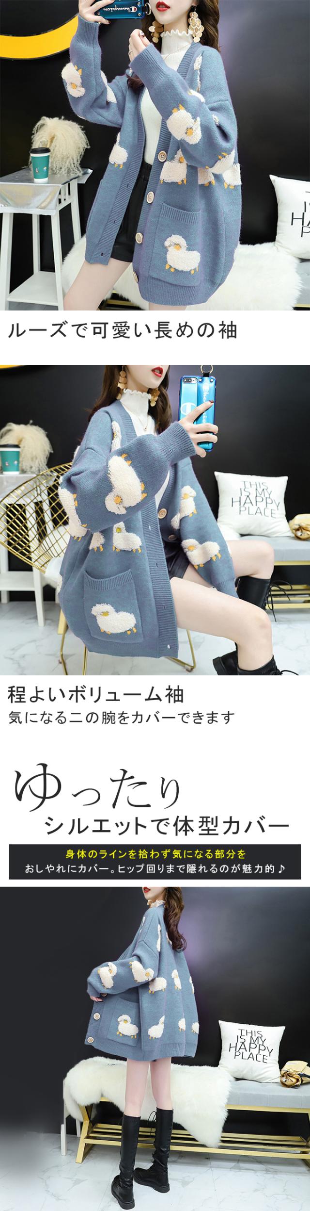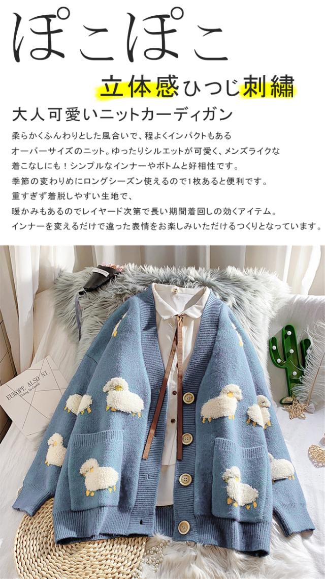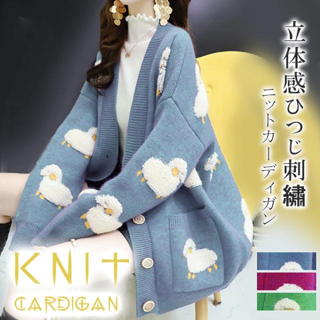 ニットカーディガン ぽこぽこ 立体感ひつじ刺? 動物柄 羽織 前開き ロング オーバーサイズ 長袖 ボリューム袖 コート ニット セーター トップス レディース 春 秋 冬 防寒 大人 ジャケット アウター