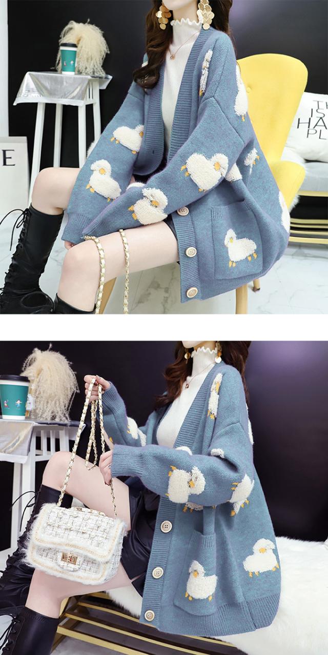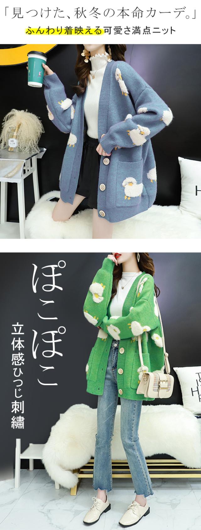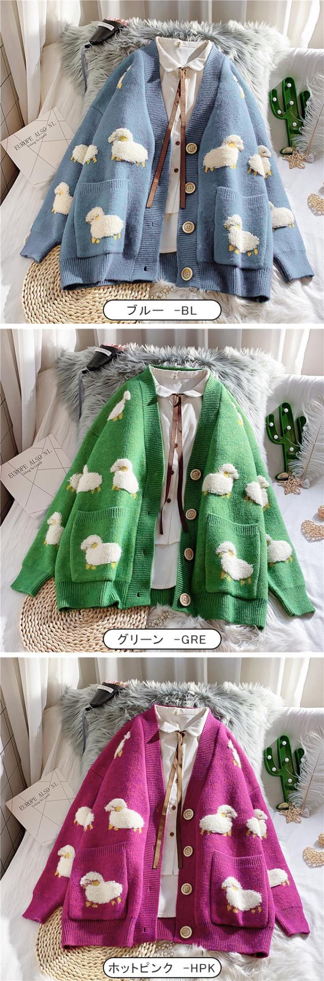 ニットカーディガン ぽこぽこ 立体感ひつじ刺? 動物柄 羽織 前開き ロング オーバーサイズ 長袖 ボリューム袖 コート ニット セーター トップス レディース 春 秋 冬 防寒 大人 ジャケット アウター