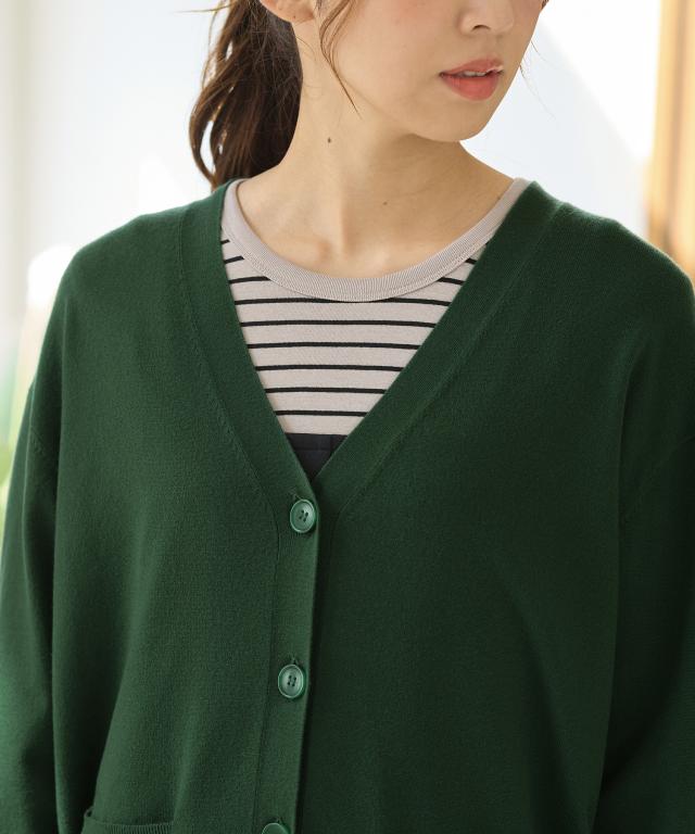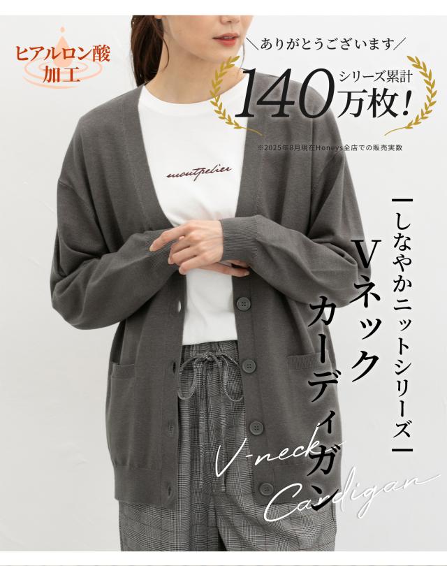 トップス カーディガン 長袖 ヒアルロン酸加工 Vネック しなやかニット アクリル混 無地 フロントボタン レディース SALE セール Honeys ハニーズ ヒアルロン酸Vカーデ