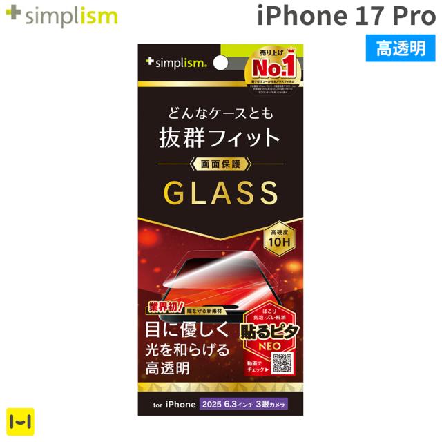 iPhone17Pro 画面保護 ガラスフィルム ( 赤色光変換 ) Simplism シンプリズム ケースとの相性抜群 画面保護強化ガラス【 目に優しい 光を和らげる ケースに干渉しにくい ガラス 10H フィルム 飛散防止 保護フィルム アイフォン iphone 17pro 】