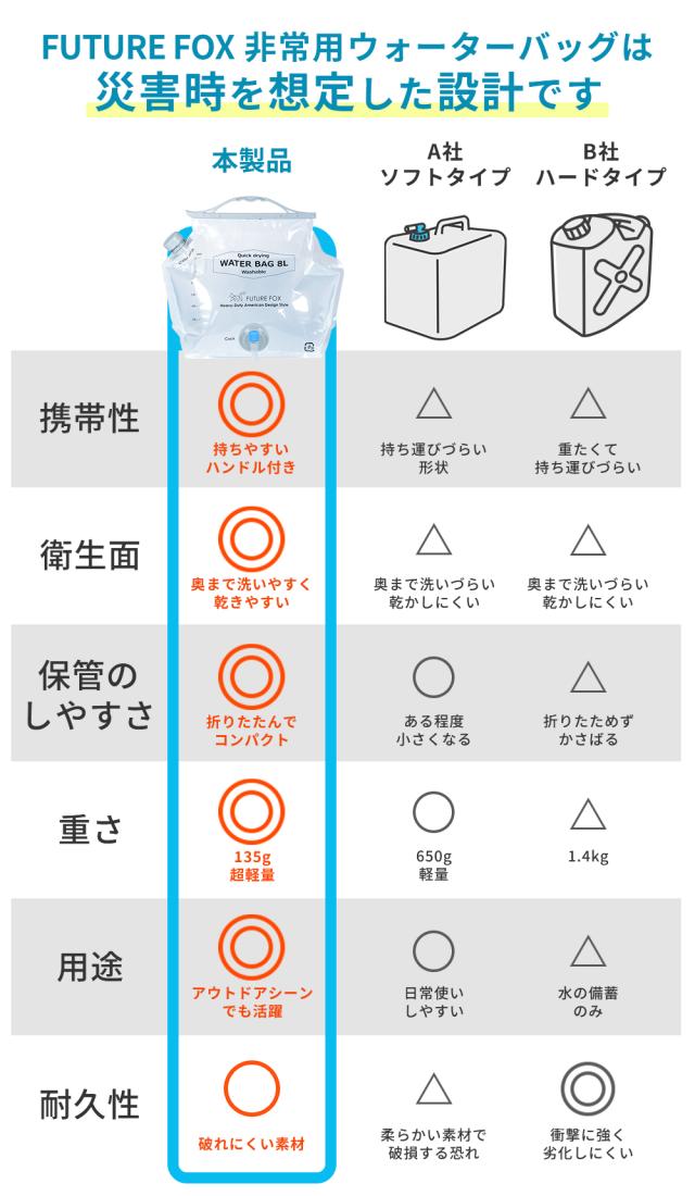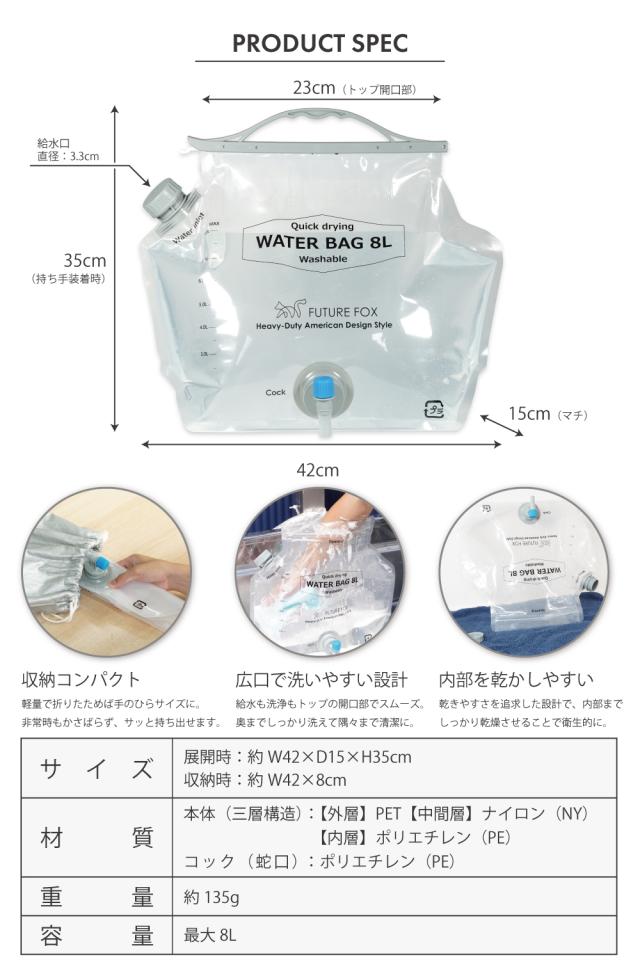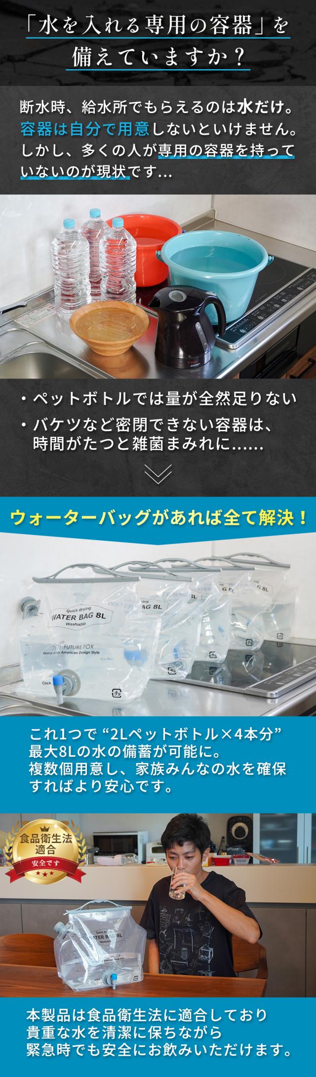 ウォーターバッグ 防災 非常用 ウォータータンク 8L 給水タンク ウォータージャグ キャンプ コンパクト 繰り返し使える 食品衛生法適合 災害グッズ