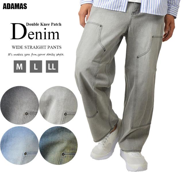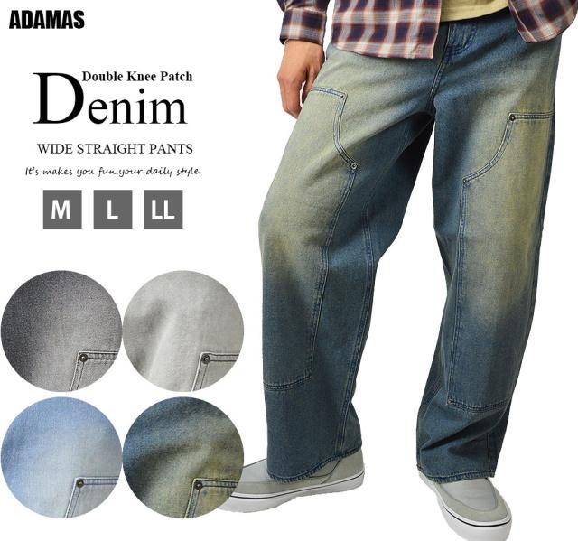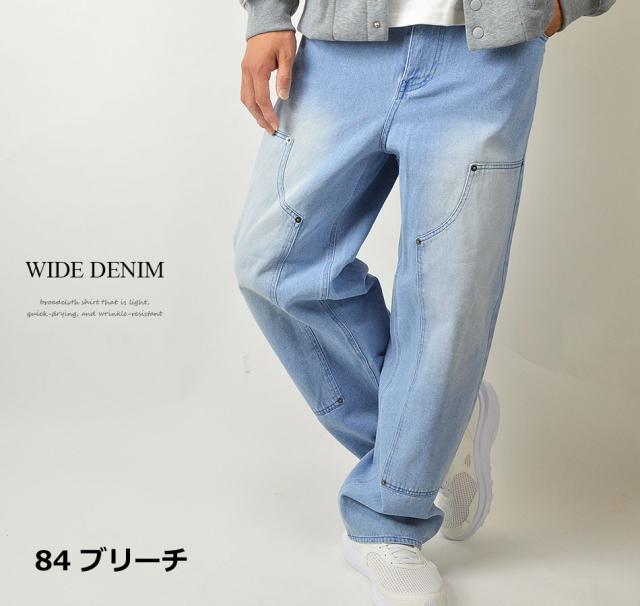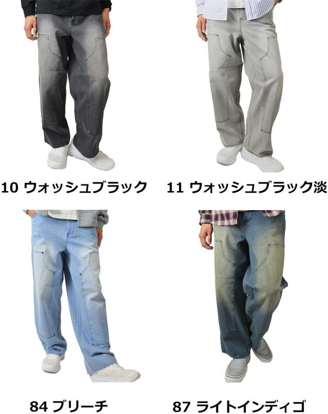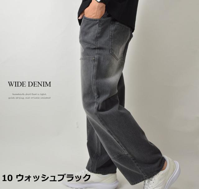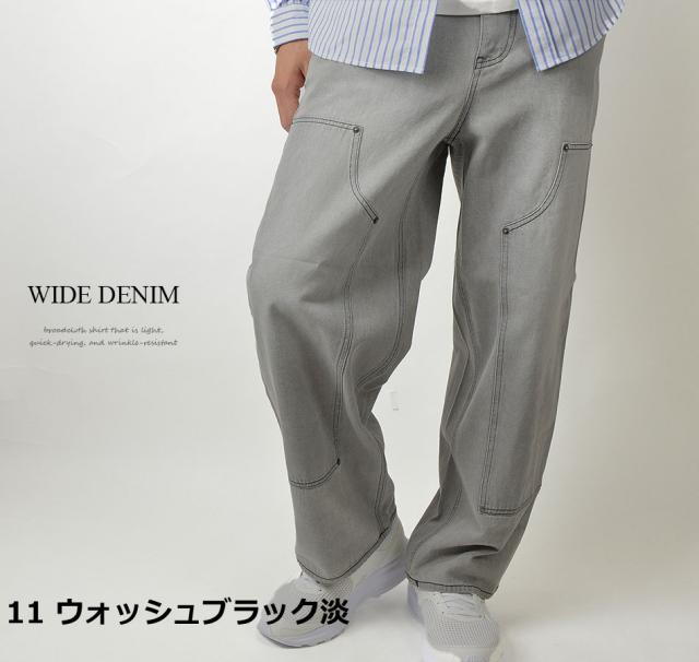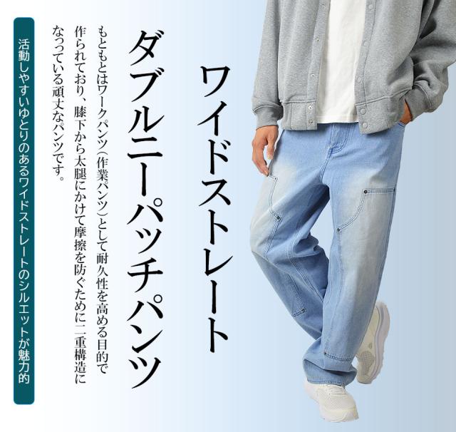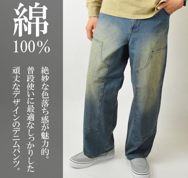 ワイド ストレート デニムパンツ ダブルニーパッチデニム ダボパン ワイドパンツ メンズ ビンテージ風 ワイドデニム ズボン ジーンズ ゆったり ジーパン バギーパンツ 綿100% ズボン デニム ウォッシュデニム インディゴ ブラック 大きいサイズ 新作 送料無料