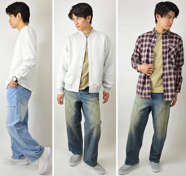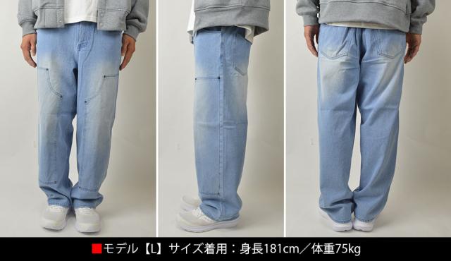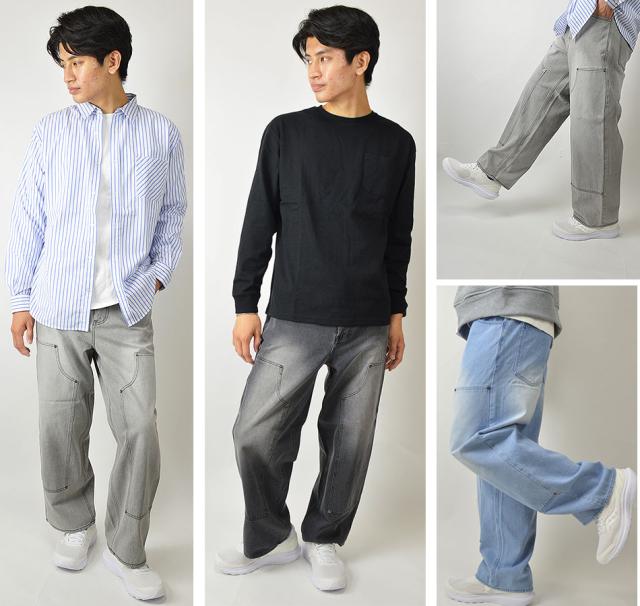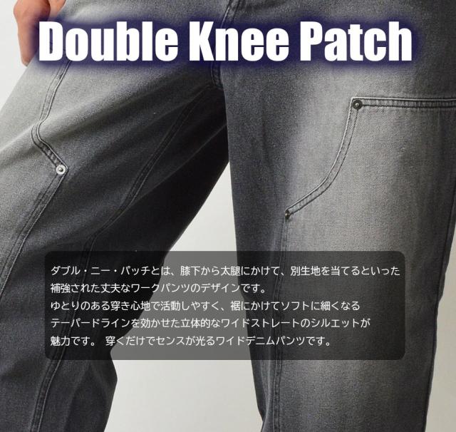 ゆったり穿けるダブルニーパッチデニムパンツ
