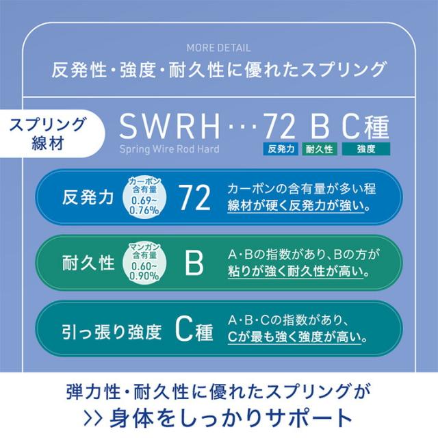 中材:ポケットコイル、シリコンフィル、25Dウレタン、