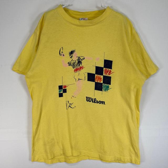 古着 90s/90年代 ウィルソン wilson 半袖Tシャツ USA製 シングルステッチ クルーネック テニス L イエロー プリント メンズ