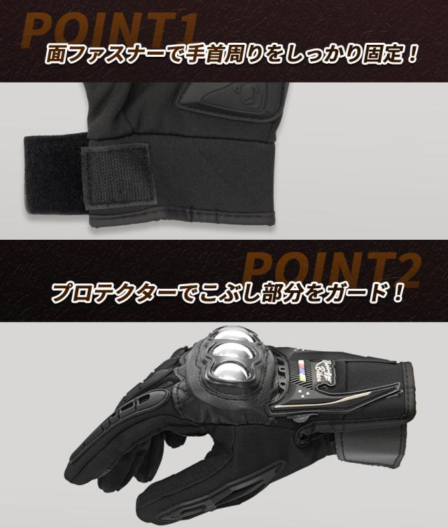 バイク グローブ 手袋 防寒 防風 耐衝撃 保温 スマホ対応 タッチパネル対応 丈夫 おしゃれ バイカー 寒さ対策 冬 秋 ブラック 黒