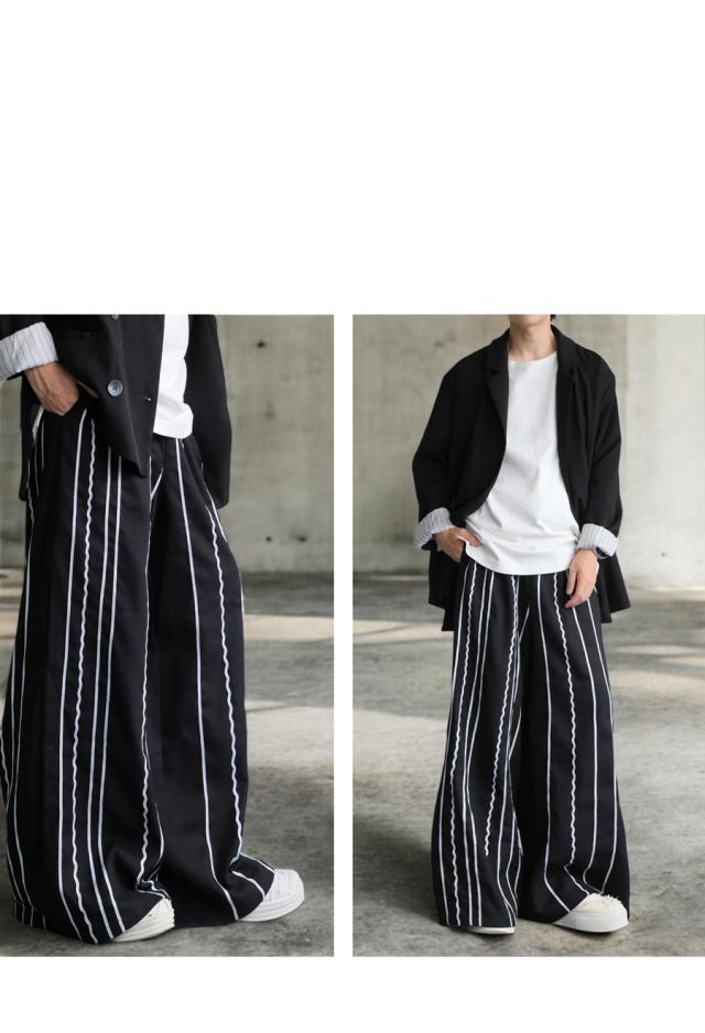 刺繍ライン入り ワイドパンツ メンズ ロング 送料無料・メール便不可