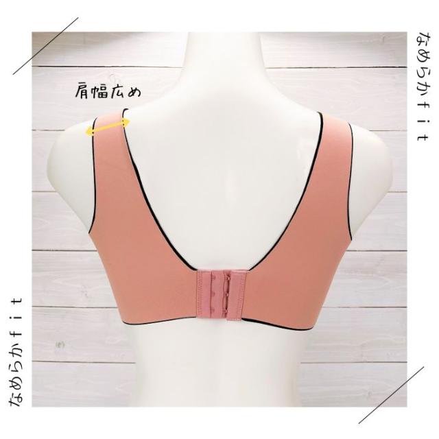 ワイヤーが肌に当たって痛い…そんな悩みを解消する、ノンワイヤー設計のブラジャー。サイドボーンもなく、締め付け感ゼロ。肩幅広めの安定設計で、動いてもズレにくく、安心して過ごせます。着脱はラクラク3段ホック。忙しい日々の中でも、ふっと心が軽くなるような着け心地をで毎日をもっと快適に。