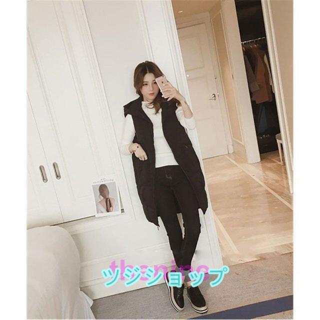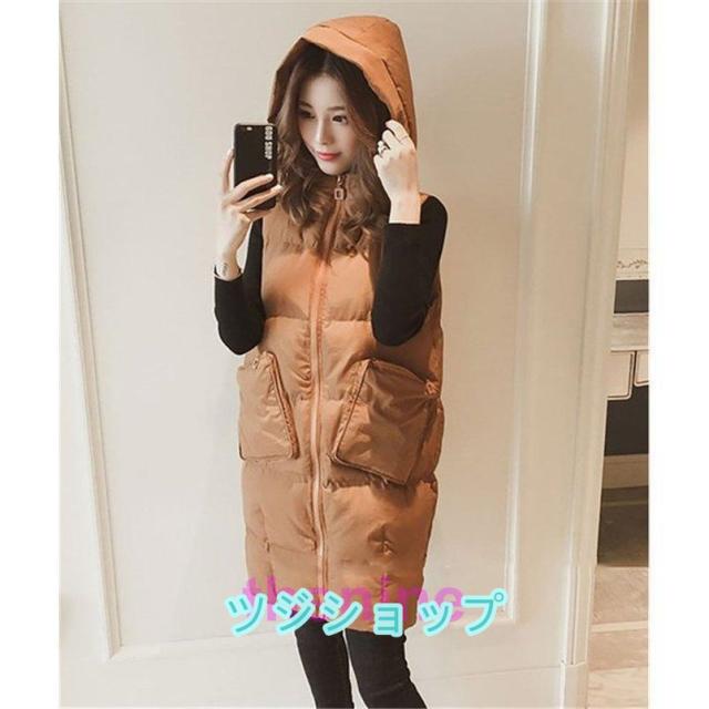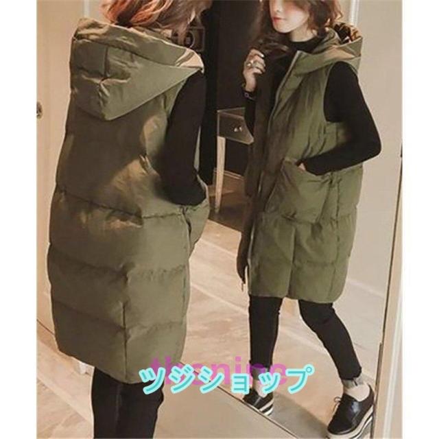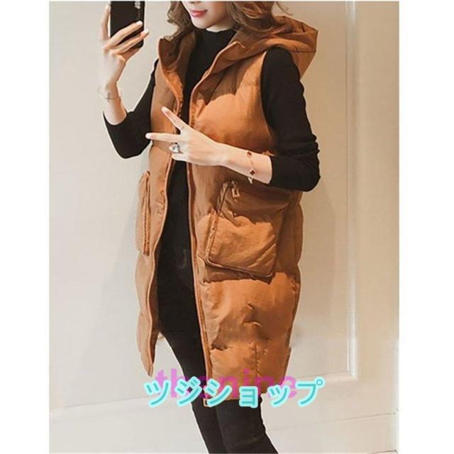 ダウンベスト レディース ロングベスト 防寒ベスト ダウンベスト ダウン フェイクダウンフードロングベスト