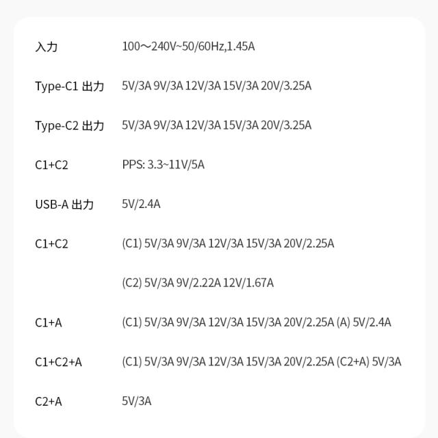 本製品は3つの独立ポートを搭載し、最大3台のデバイスを同時充電可能です。ノートパソコン、スマートフォン、タブレットなど異なる機器を一度に接続でき、家族やチームでの共用シーンに最適。ポートごとの出力自動調整機能により、接続機器に応じた最適な電力を供給。コンセント1口で複数デバイスの充電管理が効率化できます。