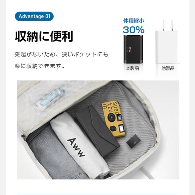 - 持ち運びも便利で、65Wの強力さで、とても良いです