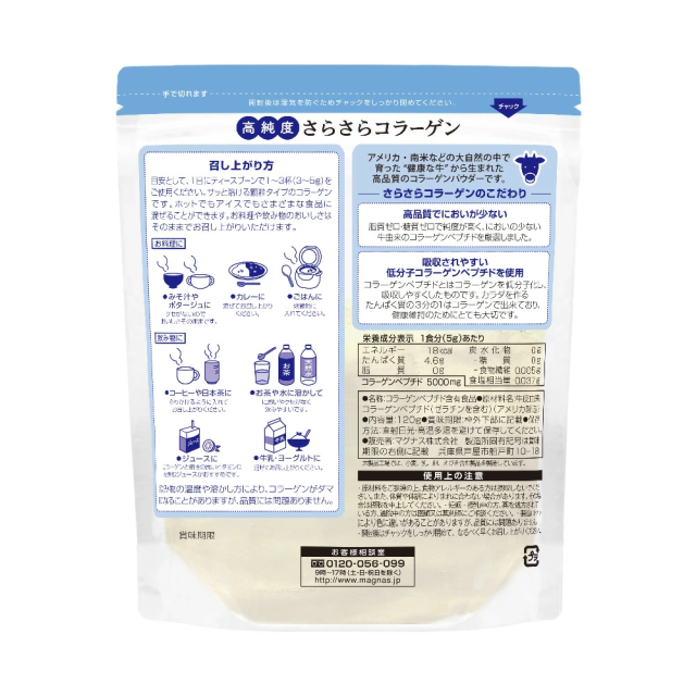高純度さらさらコラーゲン 120g 【純度100%/牛由来低分子コラーゲン/匂い少ない/溶けやすい/脂質ゼロ/糖質ゼロ/無添加/無着色/プレーン/ニュートラルな味/国内製造】