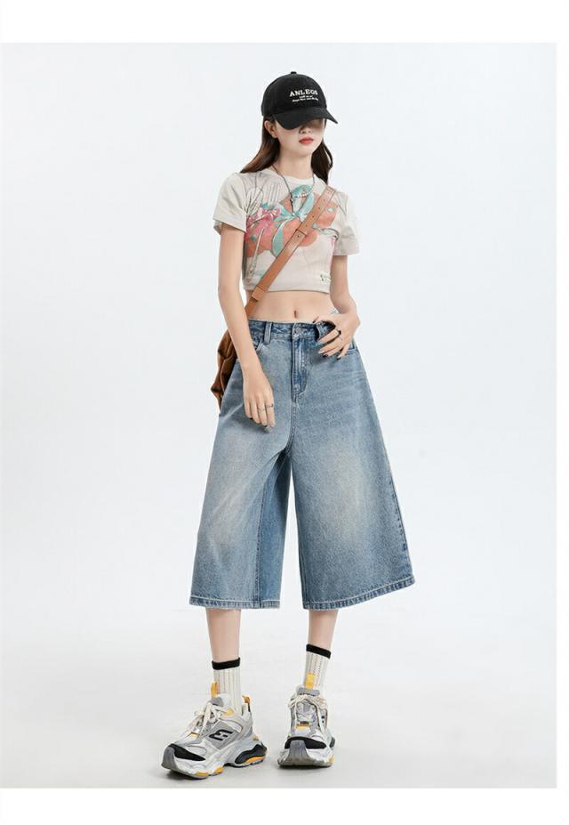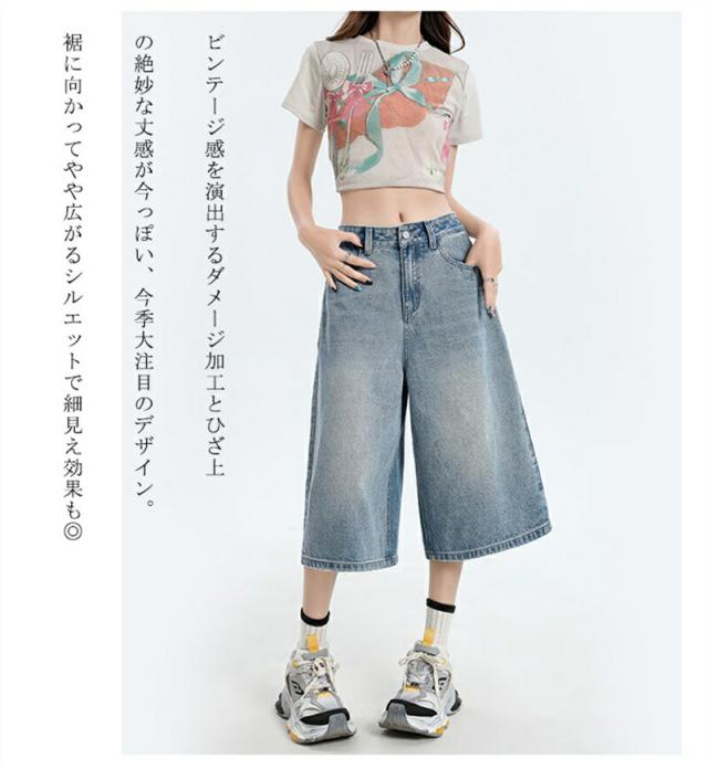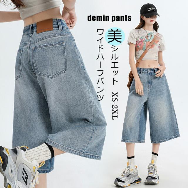 ハーフパンツ デニム レディース パンツ ショートパンツ ワイドパンツ ハーフ デニムパンツ 無地 ガウチョパンツ キュロット ワイド 大きいサイズ ゆったり 夏 体型カバー 美脚 ボトム ショート丈