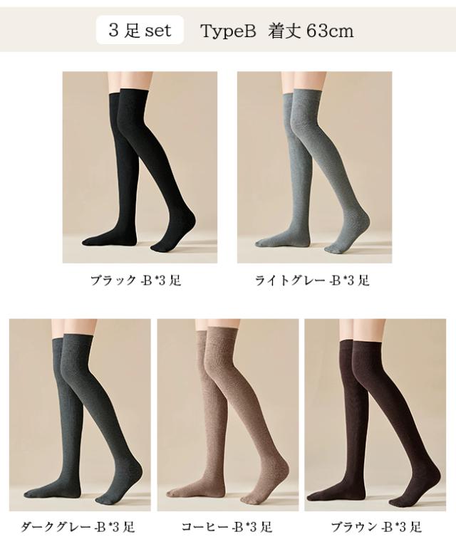 秋新作 ニーハイソックス 3足 ハイソックス スクールソックス 厚手 防寒 暖かい 秋冬 長い靴下 女の子 通学 通勤