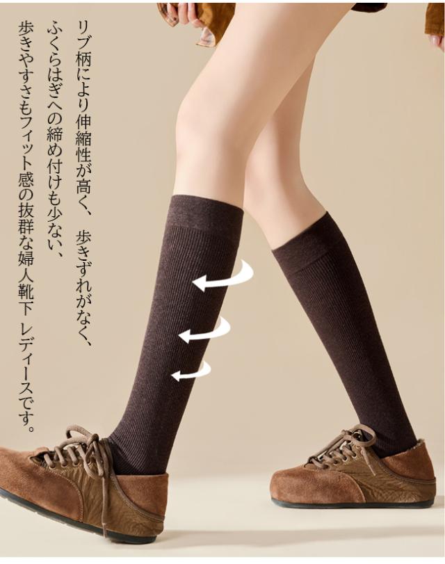 ・リブ柄により伸縮性が高く、歩きずれがなく、ふくらはぎへの締め付けも少ない、歩きやすさもフィット感の抜群な婦人靴下 レディースです。