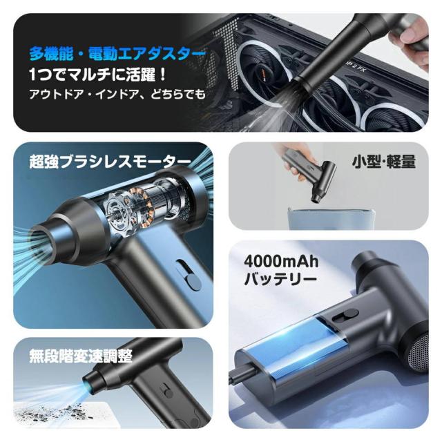 エアダスター 電動エアダスター ブロワー 110000RPM 小型ブロワー 電動 無段階風量調整 小型 ジェットファン ミニジェットファン コンパクト 多用途 PC 掃除 車内 エアコン 洗車 火起こし アウトドア プレゼント ギフト ポータブル PSE認証