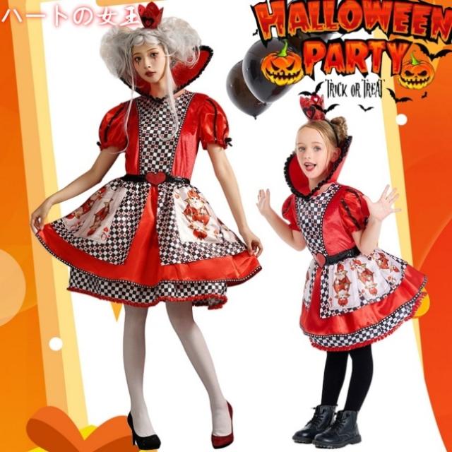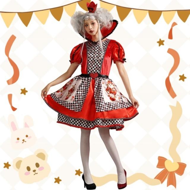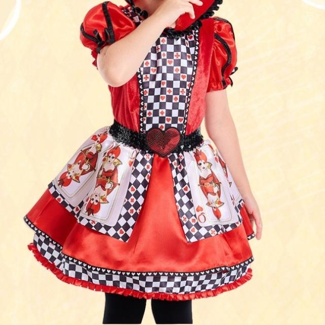 ハロウィンコスチュームハートクイーンプリントトランプの女王アリスワンダーランド桃の女王ポンポンスカート送料無料