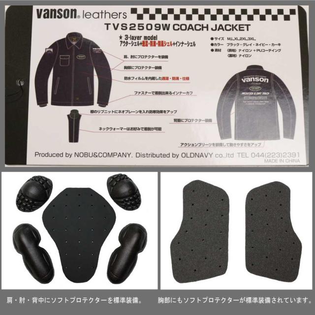 VANSON バンソン コーチジャケット アウター TVS2509W 着脱式ネックウォーマー 防風 撥水 プロテクター アメカジ バイカー メンズ