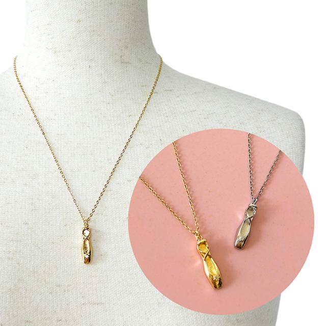 バレエ 雑貨 トゥシューズ ネックレス ポワントモチーフ 01 トウシューズチャーム シンプル 小物 発表会 ギフト プチギフト プレゼント グッズ バレエ用品 アクセサリー きらきら かわいい ストーン 花柄 金 銀 ゴールド シルバー