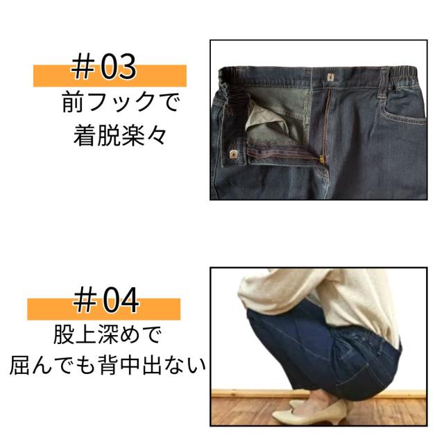 シニアファッション レディース 脇ゴム 前ファスナー デニム 普段履きズボン 60代 70代 80代 楽々 綺麗 デニムストレッチ 美脚 スリム 体型カバー ボトムス