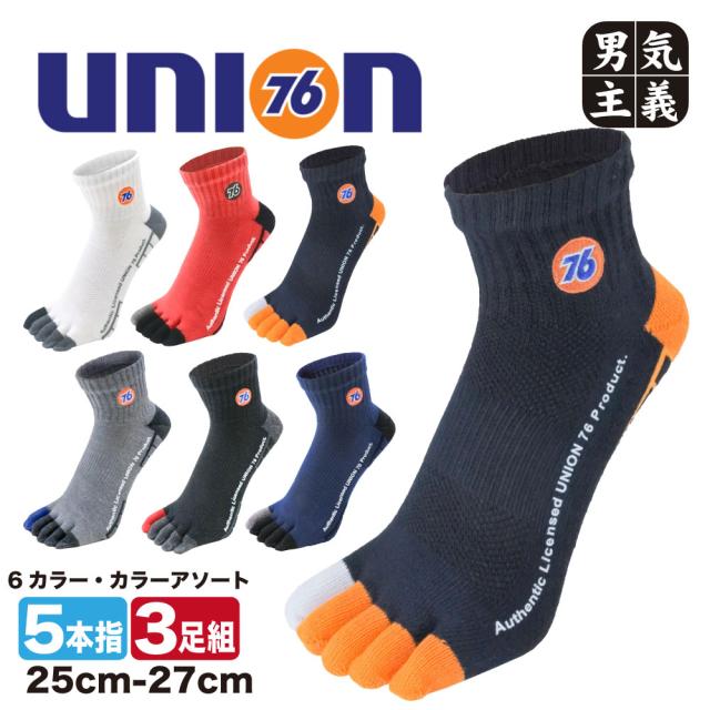 五本指 靴下 メンズ くるぶし 76 ユニオン ショート丈 ハイパークッションソックス 3足セット 25cm-27cm