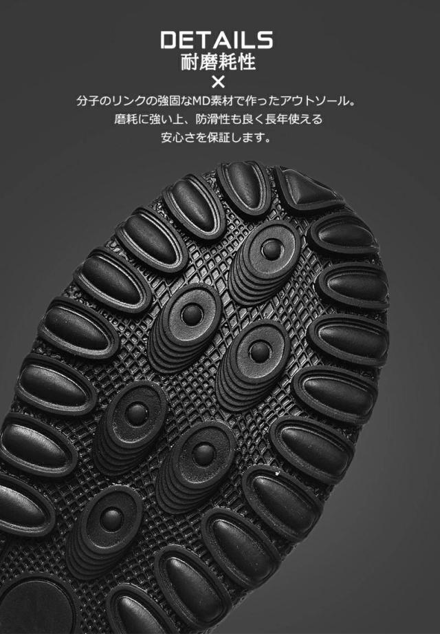・【滑り止め】アウトソールは滑り止め機能搭載で、滑りにくいから安心して歩きます。クッション性でストレスが吸収され、足が疲れません、天然ゴムは摩擦にも強いから、長く持ちます。
