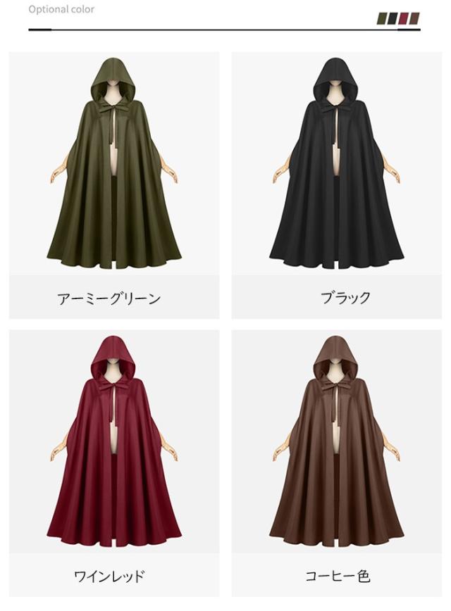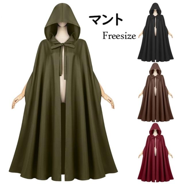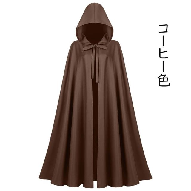 マント 中世風のフード付きマント ハロウィン用 男女兼用 ローブ 僧侶風ローブ ケープ 魔法使いコスチューム 4カラー アーミーグリーン ブラック ワインレッド コーヒー色 フリーサイズ ロング丈 mj002m6m6zu