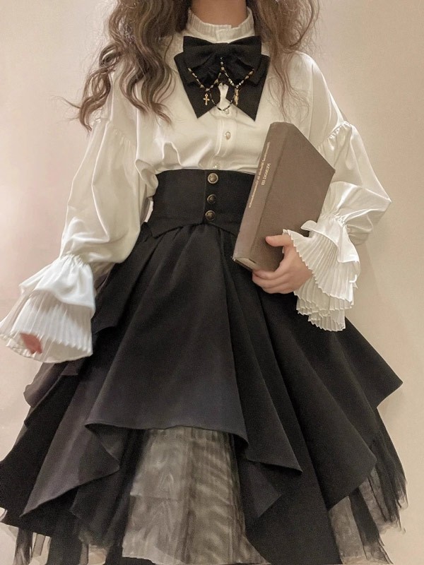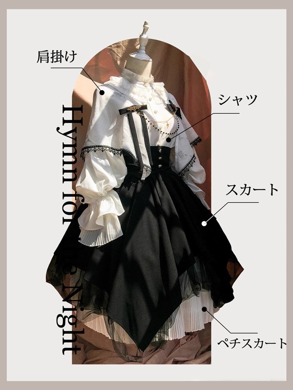 6点セット:シャツ/スカート/ネックリボン/肩掛け/ペチスカート/パニエ