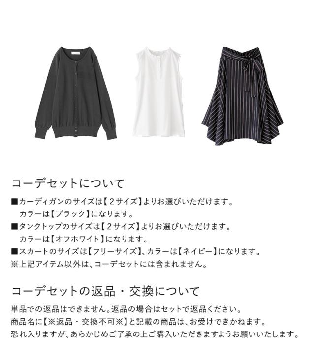 1,000円オフ4日0時迄 【送料無料】『クラシカルストライプスカート×シンプルUネックニットカーディガン×フリル襟インナータンクトップコーデ3点SET』【メール便不可】【35】[3点コーデセット 2025 レディース カーデ タンク スカート]
