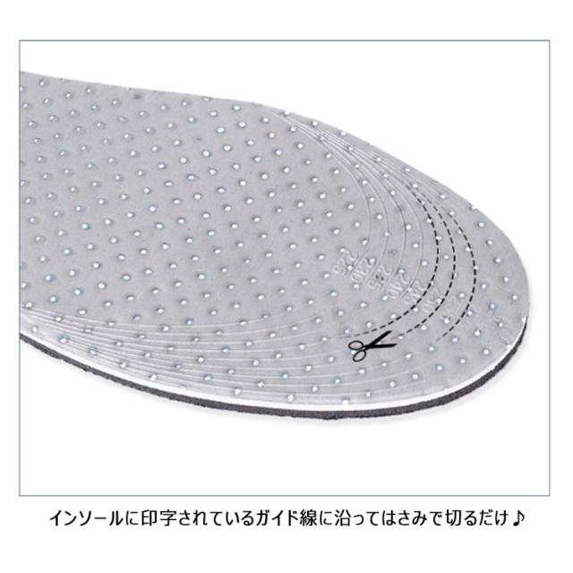 | 脚長インソール サイズに合わせて自由にカット♪ 柔らかくて弾カのあるフィット感。 フリーカット設計 インソールに印字されているガイド線に沿ってはさみで切るだけ♪ | |