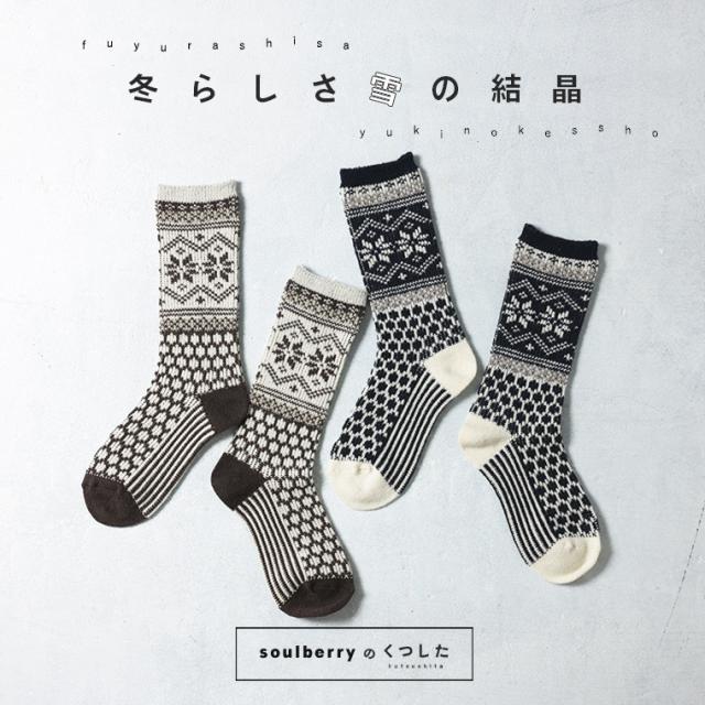 雪の結晶の靴下 レディース ソックス くつ下 くつした ノルディック柄 北欧風 幾何学柄 雑貨//返品 交換不可【ネコポス対応】