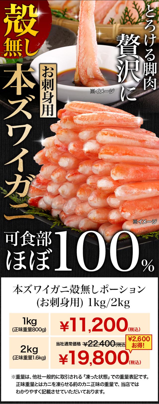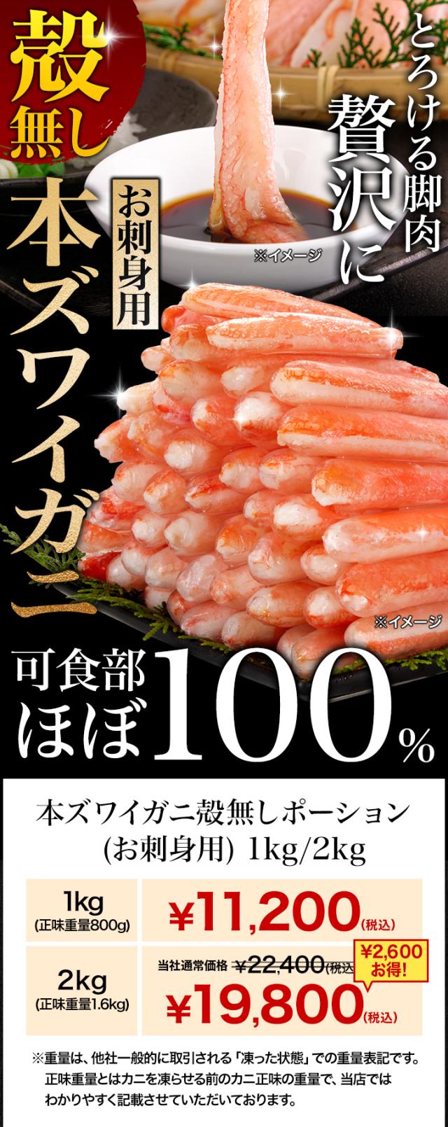 【お値引きクーポン配布中】1kg 本ズワイ殻無しポーション(お刺身用) 訳有 訳あり わけあり ワケ 生ズワイガニ 生ずわいがに ずわい ズワイ ズワイ蟹 ずわい蟹 お刺身 ポーション 剥き身
