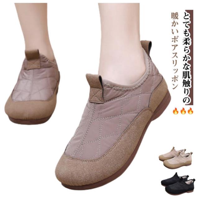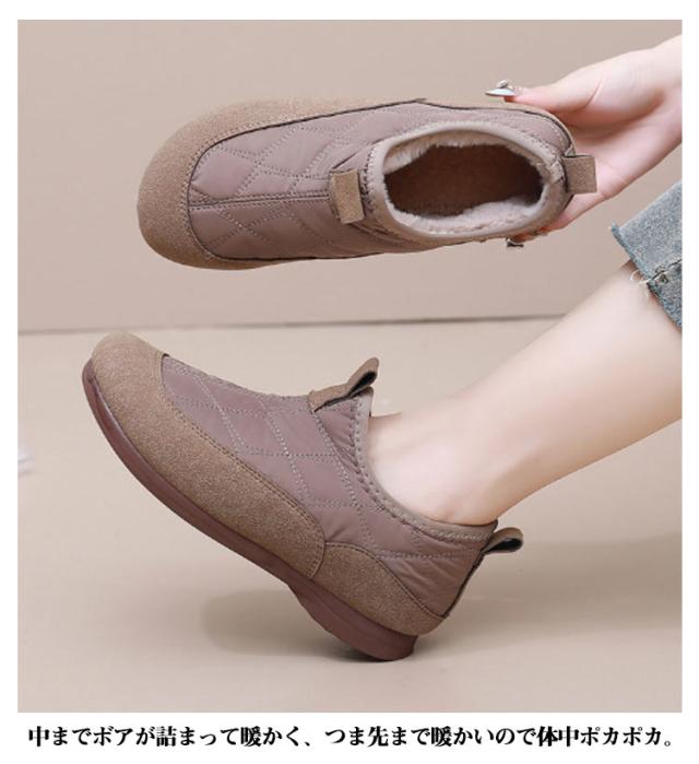 裏起毛 ボアショートブーツ レディース ショートブーツ ファー ローカット ボアショートブーツ ブーティ 歩きやすい 滑りにくい 防水 ボアスリッポン もこもこ あったか 大人 女性 暖かい フラット 紐なし