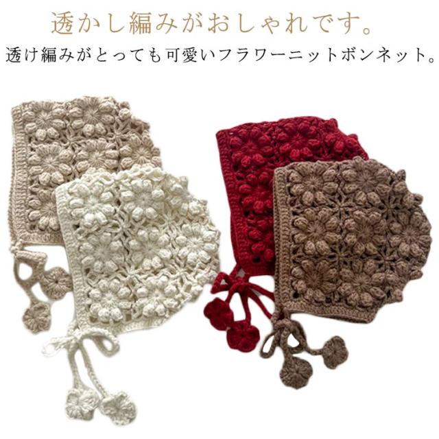 帽子 ニット ニットボンネット 赤ちゃん 女の子 キャップ 透かし編み ボンネット ニットボンネット ベビーボンネット 紫外線 韓国子供服 あご紐 ナチュラル 日除け ベビー帽子 シンプル おしゃれ かわいい フリーサイズ 0歳 1歳 新生児 お祝い ギフト