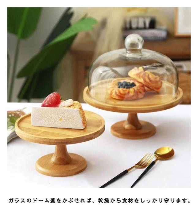 ケーキトレー 木 1段 蓋付き ケーキスタンド ガラス蓋つき デザート おしゃれ 台付き スタンド ケーキスタンド 木製 ケーキスタンド 硝子蓋 北欧 製菓 ケーキ ディスプレイ 結婚式