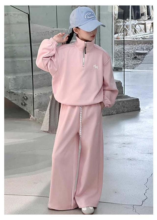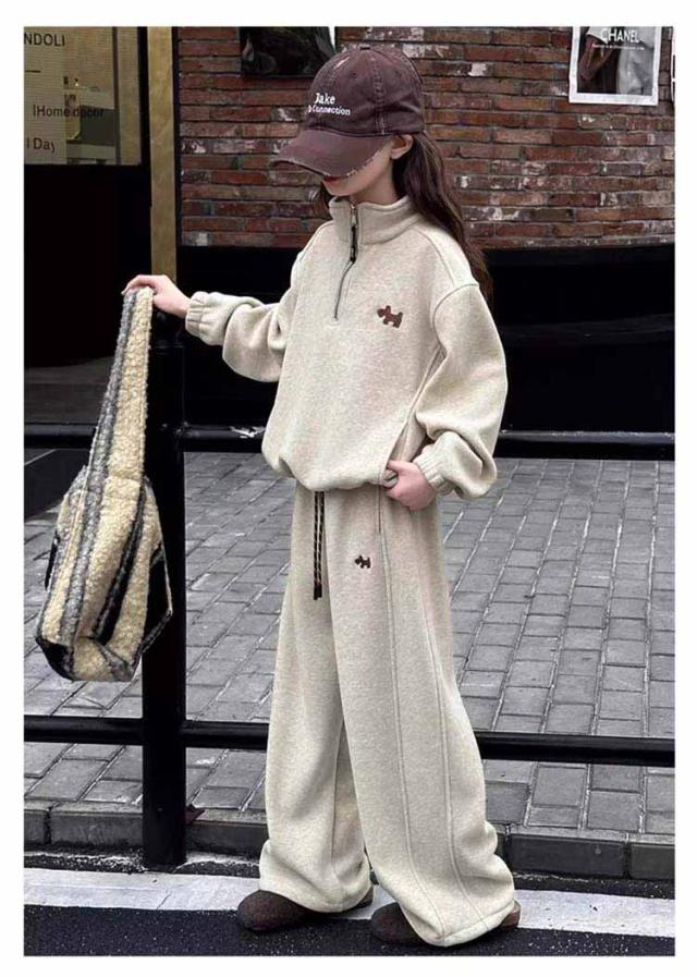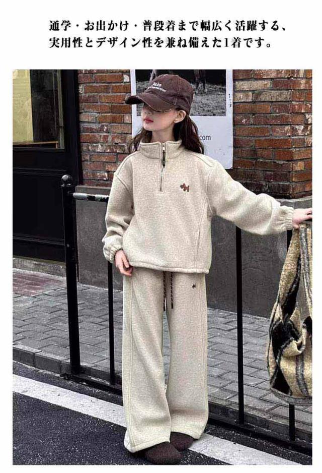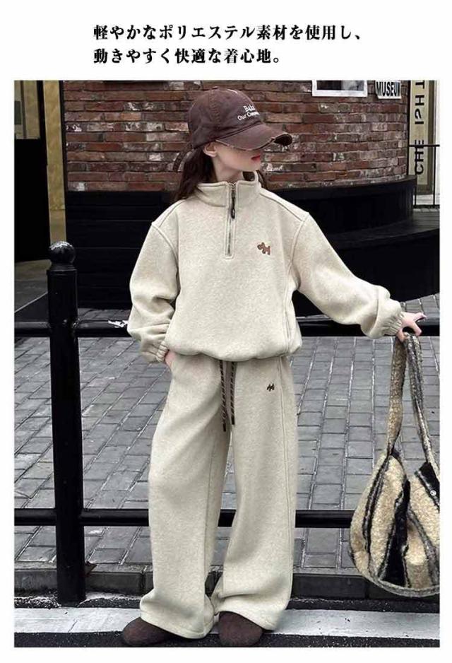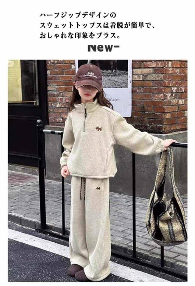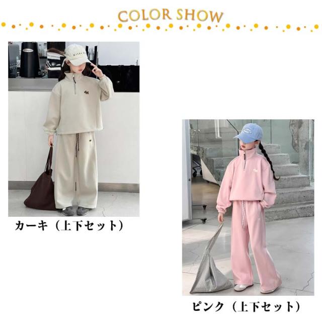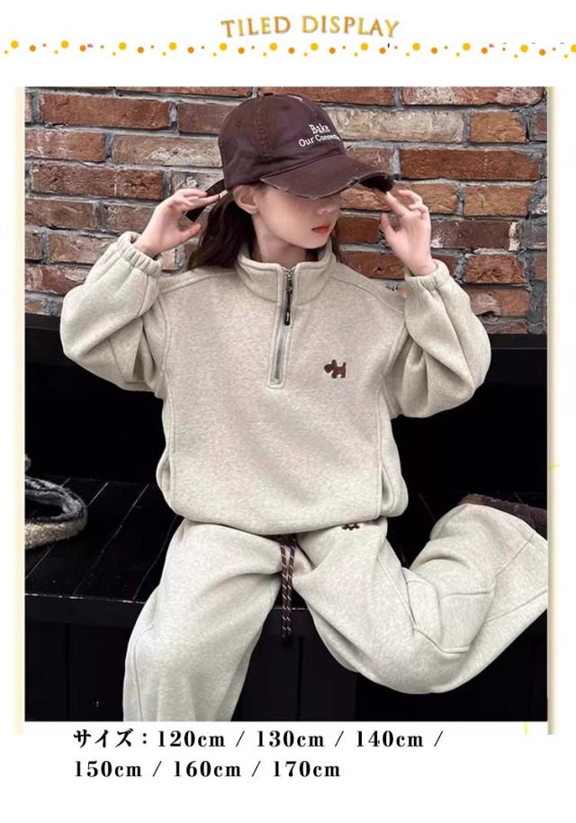 | 女の子 カジュアルセットアップ サイズ:120cm / 130cm / 140cm / 150cm / 160cm / 170cm 軽やかなポリエステル素材を使用し、動きやすく快適な着心地。 ハーフジップデザインのスウェットトップスは着脱が簡単で、おしゃれな印象をプラス。 パンツはウエストゴム仕様でフィット感があり、元気に動くお子さまにぴったり。 通学・お出かけ・普段着まで幅広く活躍する、実用性とデザイン性を兼ね備えた1着です。 | |