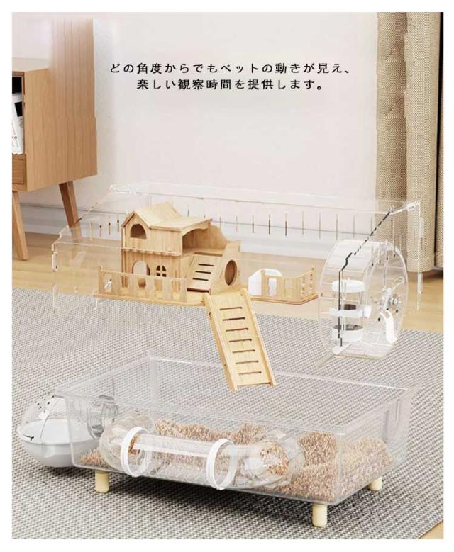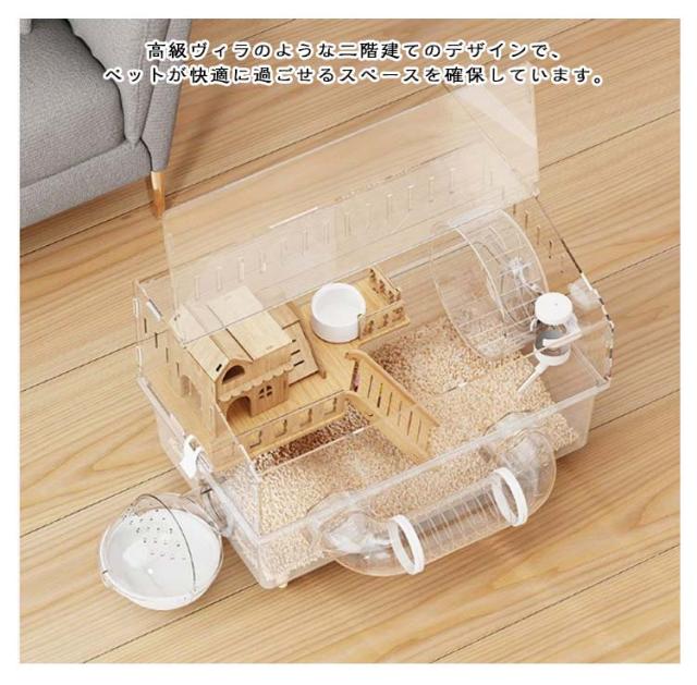 全面クリア 多頭飼い対応 大型 ハムスターケージ 透明ケージ アクリル ゴールデンハムスター 小動物 大きい お手入れ簡単 脱走防止 広い空間 ハムスターケージ 通気性良好 組み立て簡単 観察しやすい 給水ボトル 回し車 お風呂