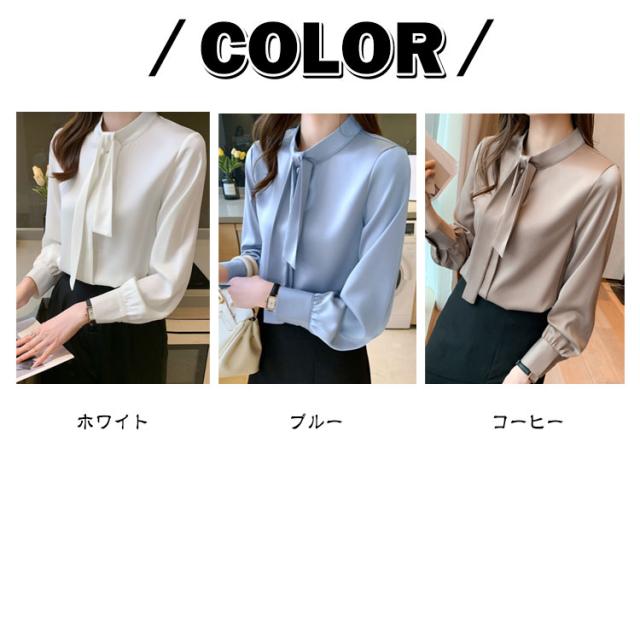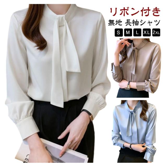 シャツ リボン ブラウス 長袖 ボウタイブラウス フリルネック レディース ハイネック ボウタイ リボンタイ ボウタイブラウス シャツブラウス バンドカラー とろみ きれいめ フォーマル 通勤 オフィス 入学式
