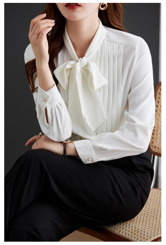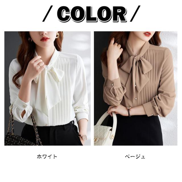 タック入り レディース ボウタイブラウス ボウタイブラウス かわいい 通勤 リボン きれいめ トップス シャツブラウス ボウタイ リボンタイ フリルネック ハイネック シャツ とろみ 長袖 オフィス 入学式 卒業式