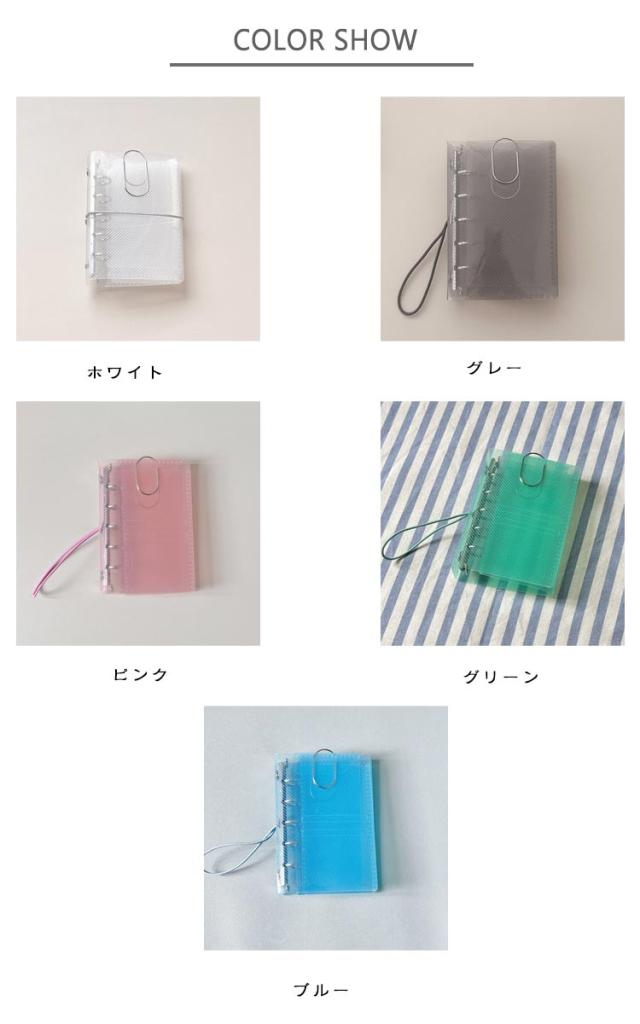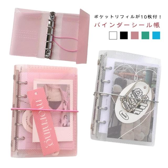 | ポケットリフィルが10枚付! 【バインダー帳】 表紙が3つ折り&ポケットバインダーになっているM5サイズのバインダーファイル。 裏表にポケットのあるリフィルが10枚付属! 表紙が透明なので、ポケットに好きなカードやステッカーを挟むだけで簡単に自分仕様にできます。 可愛い大きめクリップも1つ付属♪ 推しカラーに合わせて5色から選ぶのもおすすめです! | |