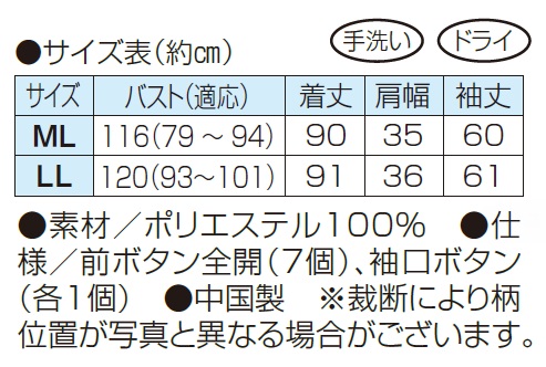 ●仕様/前ボタン全開(7個)、袖口ボタン(各1個)
