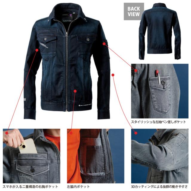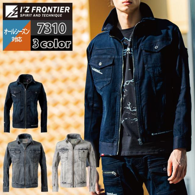アイズフロンティア 作業服 2025秋冬新作 7310 ストレッチデニムワークジャケット S-4L オールシーズン 作業着 おしゃれ